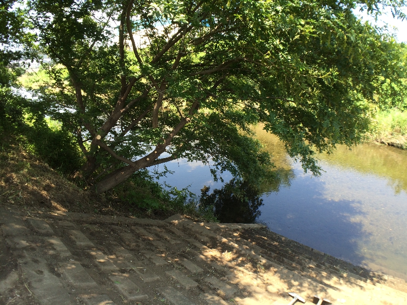 土手を越えたところにある大きなエノキの木のある場所です。